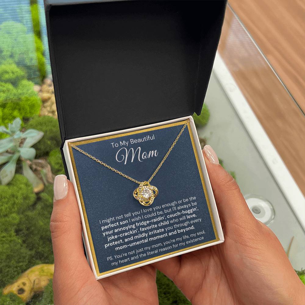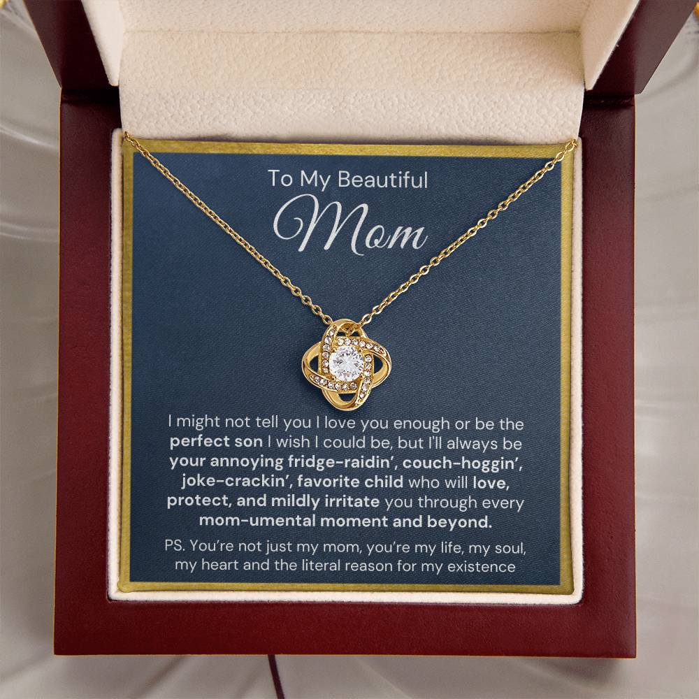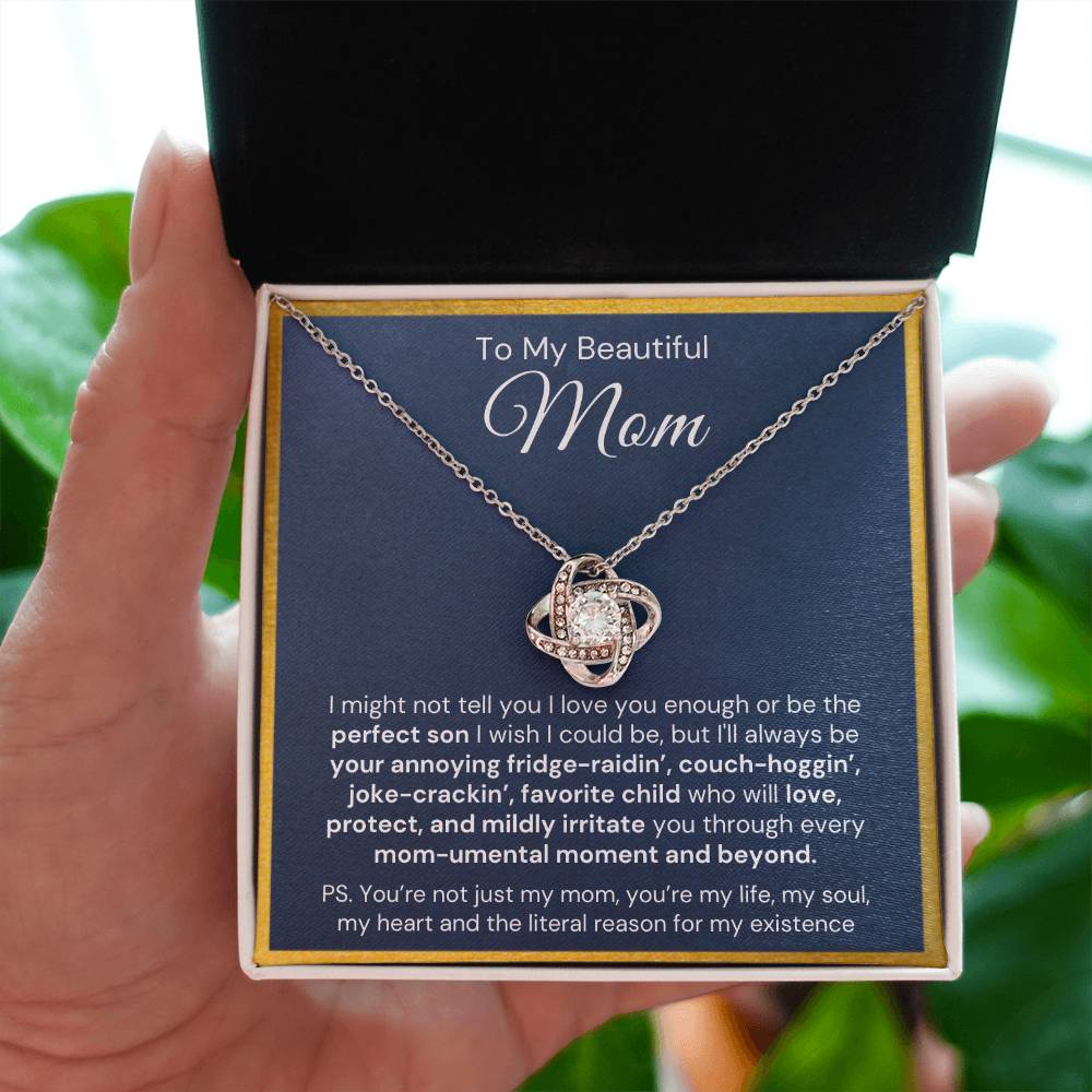 💕 This beautiful Love Knot necklace is created specially to celebrate your Mom and all your special moments together. Imagine her reaction when she sees this beautiful Love Knot necklace specially to celebrate her and all she has done for you. She will cry from laughter and then cry tears of happiness.💕