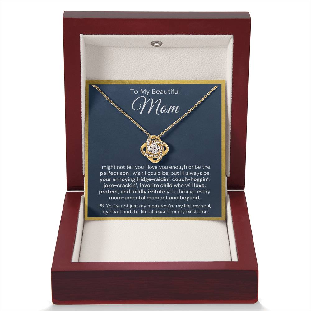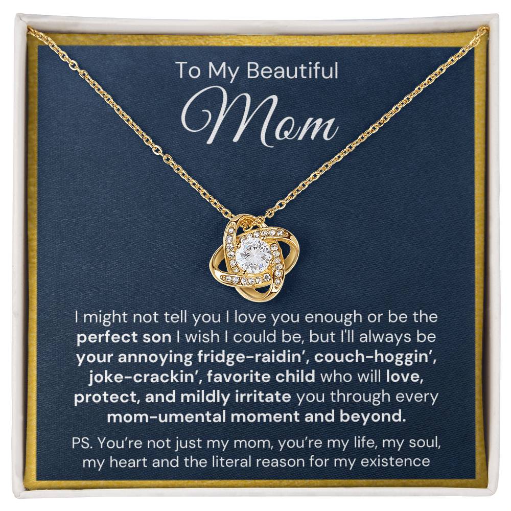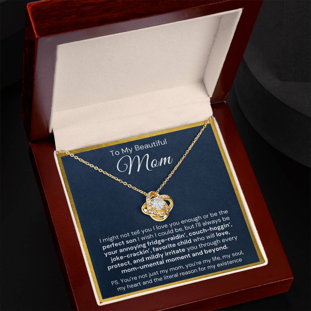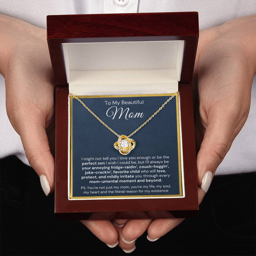 💕 This beautiful Love Knot necklace is created specially to celebrate your Mom and all your special moments together. Imagine her reaction when she sees this beautiful Love Knot necklace specially to celebrate her and all she has done for you. She will cry from laughter and then cry tears of happiness.💕